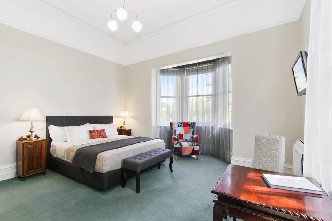 Our Deluxe King Rooms are spacious and modern with room to stretch out and relax. With a king bed, private ensuite, magnificent high ceilings, flat screen television and comfortable armchairs.